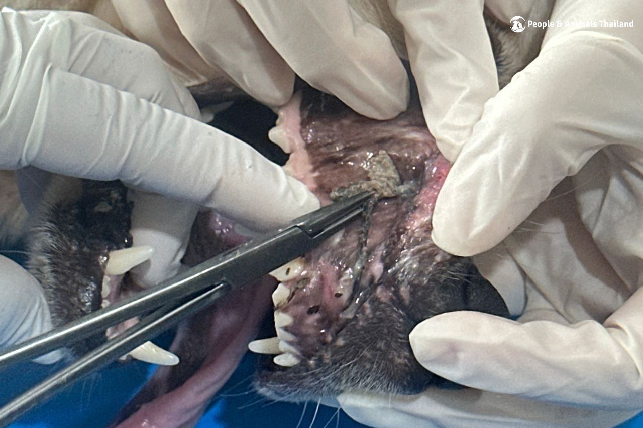 ทีมของเราได้ตัดเชือกออก ทำความสะอาดและรักษาบาดแผล จากนั้นรีบพาเธอกลับไปหาลูกให้เร็วที่สุด แม่หมาและลูก ๆ จะได้รับการทำหมันเมื่อมีอายุถึงกำหนด